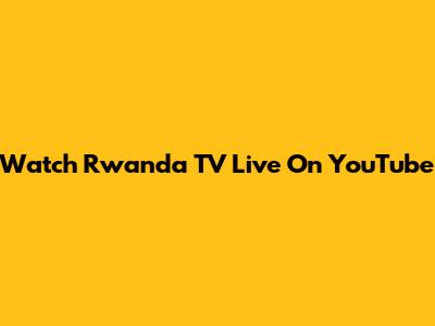 Watch Rwanda TV Live On YouTube