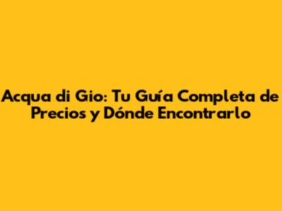 ¿Dónde Comprar Acqua di Gio al Mejor Precio?