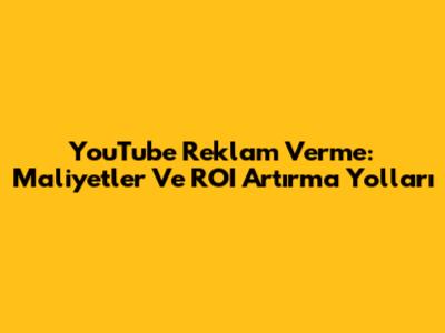 YouTube Reklam Verme: Maliyetler Ve ROI Artırma Yolları