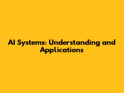 AI Systems: Understanding And Applications