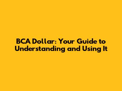 BCA Dollar: Your Guide To Understanding And Using It