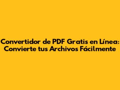 Convertidor De PDF Gratis En Línea: Convierte Tus Archivos Fácilmente