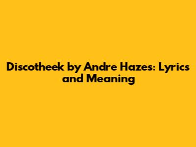 Discotheek By Andre Hazes: Lyrics And Meaning