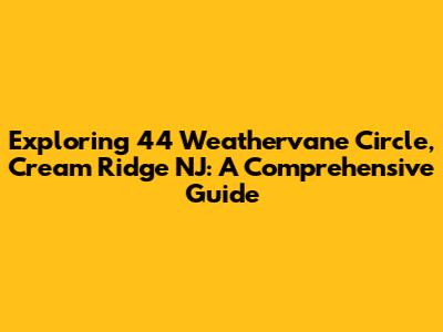 Hey everyone! Ever wondered about 44 Weathervane Circle in Cream Ridge, NJ? Well, buckle up because we're diving deep into this charming address. We'll explore everything from its location and local amenities to its potential value and what makes the Cream Ridge area so special. Whether you're a prospective homeowner, a curious investor, or just someone who loves to browse, this guide is for you. Let's get started and unravel the story behind 44 Weathervane Circle!
