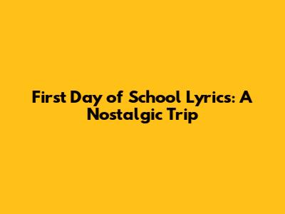 First Day Of School Lyrics: A Nostalgic Trip