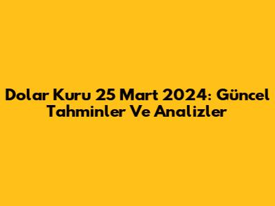 Dolar Kuru 25 Mart 2024: Güncel Tahminler Ve Analizler