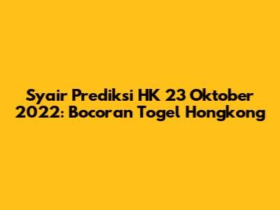 Syair Prediksi HK 23 Oktober 2022: Bocoran Togel Hongkong