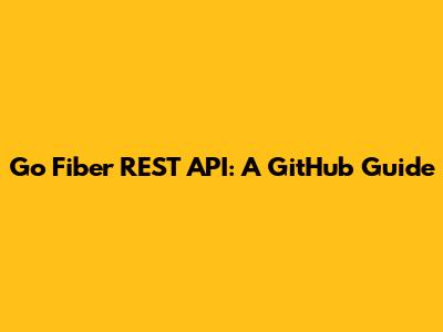 Go Fiber REST API: A GitHub Guide