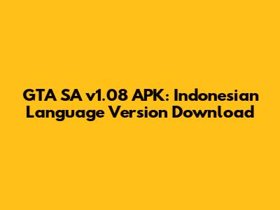 Hey guys! Are you looking for the GTA SA v1.08 APK with Indonesian language support? You've come to the right place! Grand Theft Auto: San Andreas is a classic, and playing it in Indonesian just adds a whole new level of immersion. This article will guide you through everything you need to know about downloading and installing the GTA SA v1.08 APK in Bahasa Indonesia, ensuring you have a seamless and enjoyable gaming experience. We'll cover the features, system requirements, installation steps, and even some troubleshooting tips to help you out if you run into any problems. So, let's dive in and get you set up to cruise around San Andreas in style!