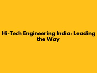 Hi-Tech Engineering India: Leading The Way