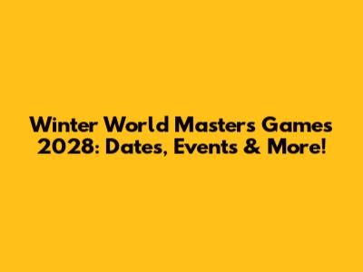Winter World Masters Games 2028: Dates, Events & More!