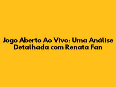 Jogo Aberto com Renata Fan é muito mais do que um programa esportivo. É um clássico da televisão brasileira, um ponto de encontro para os amantes do esporte e um palco de debates e opiniões. Com Renata Fan à frente, o programa conquistou uma legião de fãs e se tornou uma referência no cenário esportivo. Se você é fã de esportes e busca informação, análise e entretenimento, o Jogo Aberto é o programa certo para você. Não perca a oportunidade de acompanhar as análises, os debates e as entrevistas que fazem do Jogo Aberto um sucesso.