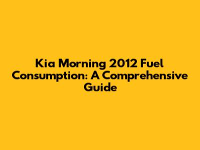 Understanding Kia Morning 2012 Fuel Consumption: Key Factors
