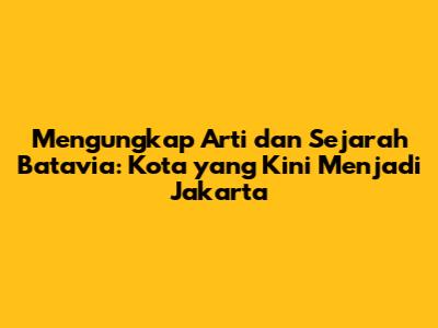 Mengungkap Arti Dan Sejarah Batavia: Kota Yang Kini Menjadi Jakarta