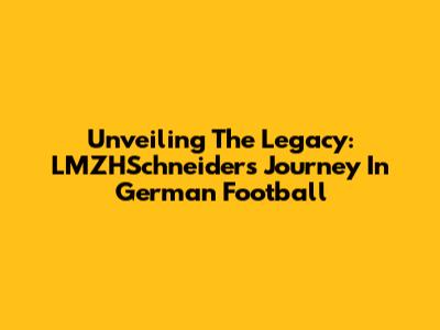 Unveiling The Legacy: LMZHSchneider's Journey In German Football