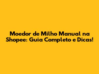 Moedor De Milho Manual Na Shopee: Guia Completo E Dicas!