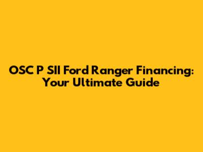 OSC P SII Ford Ranger Financing: Your Ultimate Guide