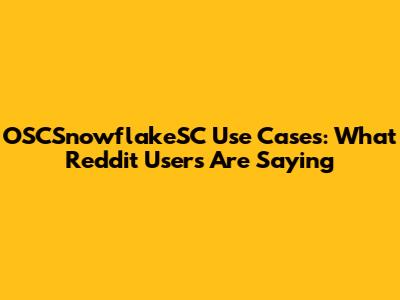 OSCSnowflakeSC Use Cases: What Reddit Users Are Saying