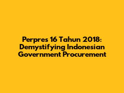 Hey guys! Ever heard of Perpres 16 Tahun 2018? No? Well, if you're even remotely interested in how the Indonesian government buys stuff – from paperclips to fighter jets – you're gonna want to know about it. This presidential regulation is a big deal, and we're diving deep to break it down. Think of it as the rulebook for Indonesian government procurement. It covers everything from planning and budgeting to selecting suppliers and managing contracts. Understanding Perpres 16/2018 is super important for anyone looking to do business with the Indonesian government, and it can also provide insight into how public funds are spent. This article will go through the main parts of the regulation, make it easier to understand, and show why it matters.
