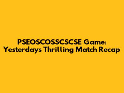 PSEOSCOSSCSCSE Game: A Recap Of Yesterday's Thrilling Match