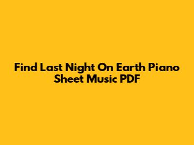 Find 'Last Night On Earth' Piano Sheet Music PDF