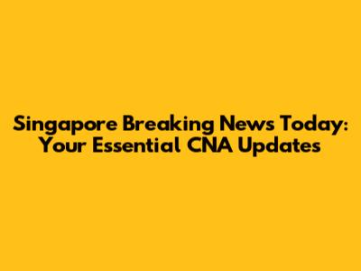 Singapore Breaking News Today: Latest CNA Updates