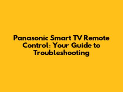 Troubleshoot Your Panasonic Smart TV Remote Control