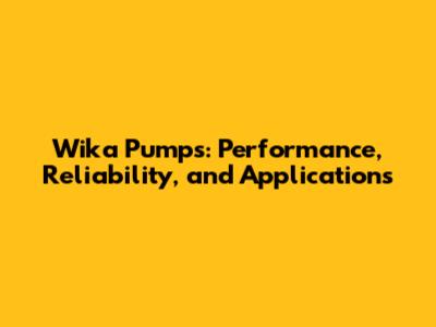 Wika Pumps: Performance, Reliability, And Applications