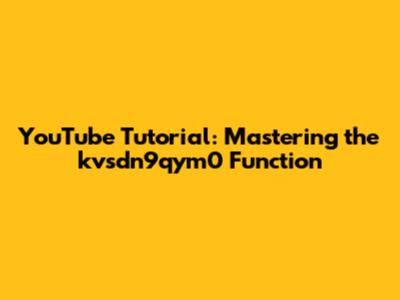 YouTube Tutorial: Mastering The Kvsdn9qym0 Function